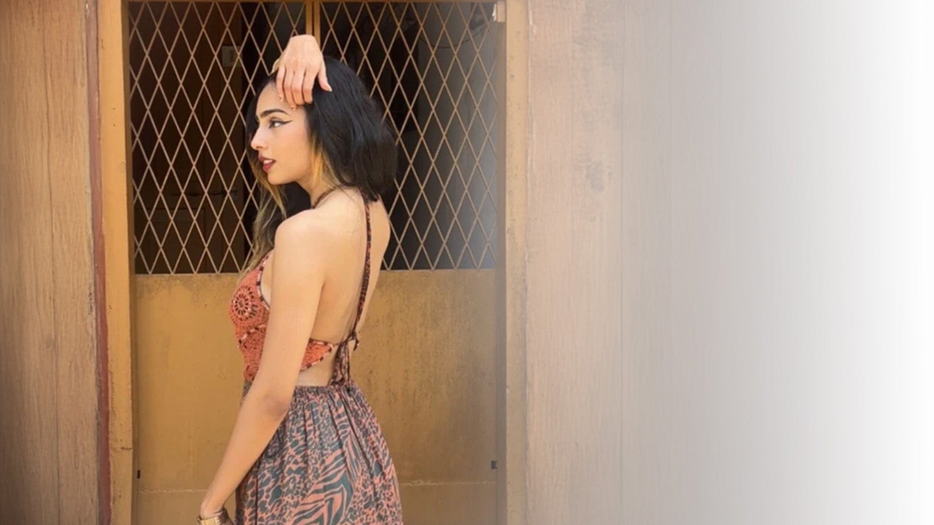 • Ayna in Flamingo lily backless long dress