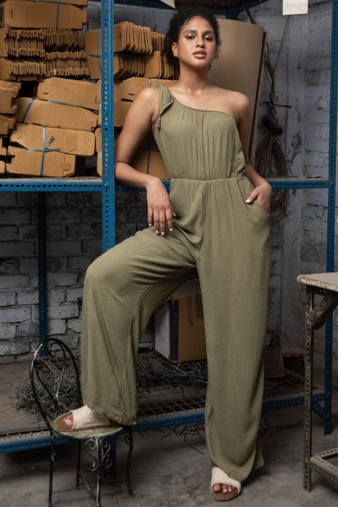 The jumpsuit has an elegant one-shoulder design that frames the shoulder beautifully, adding a gorgeous charm to your overall look.