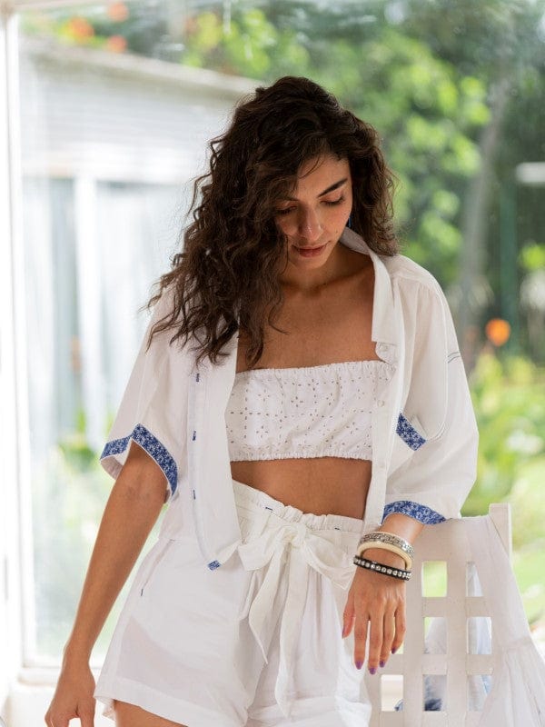 Minimalistic Look: Wear it half-buttoned over high-waisted denim or cotton shorts, and add white canvas sneakers.