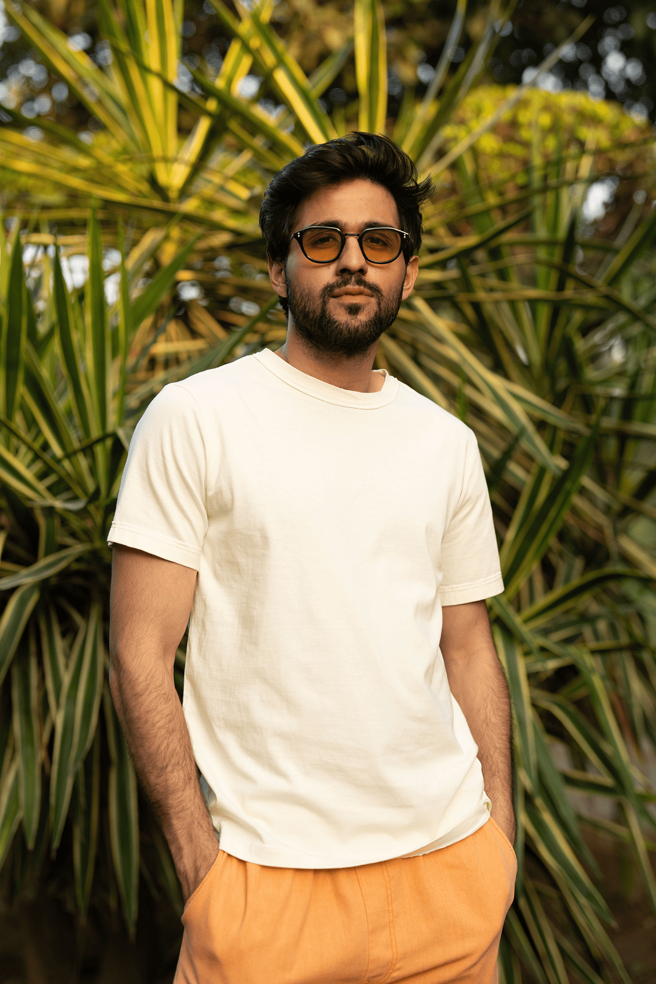 Bum on tap t-shirt- sof breathable cotton single jersey ,men's round neck t-shirt features a relaxed fit designed for everyday comfort.the back is heilighted with a playful beachbum motif combinding print and embroidery capturing a tap bear vibe.